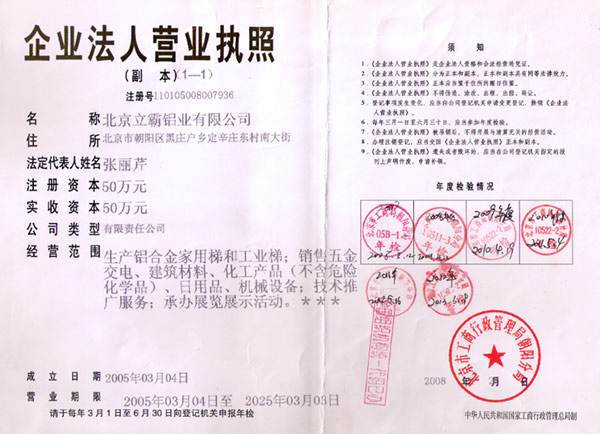 北京立霸鋁業(yè)有限公司是集研發(fā)、生產(chǎn)和銷售各種鋁合金工業(yè)型材、管材、板材、鋁合金梯子材料及梯子配件、鋁合金梯子、絕絕梯子、鋁合金液壓升降平臺(tái)等系列產(chǎn)品的專業(yè)廠家。